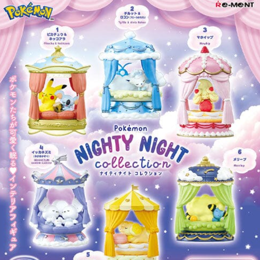 Drift into a world of cozy cuteness with the Re-Ment Pokémon: Nighty Night Collection Vol. 1! This enchanting blind box series captures your favorite Pokémon at their most peaceful moment—tucked in for a night of sweet dreams. Each figure showcases intricate details as beloved Pokémon characters snuggle up in beautifully designed beds that reflect their unique personalities and types. From fluffy pillows and soft blankets to themed bed frames and accessories, every miniature scene is a heartwarming display of bedtime bliss.
