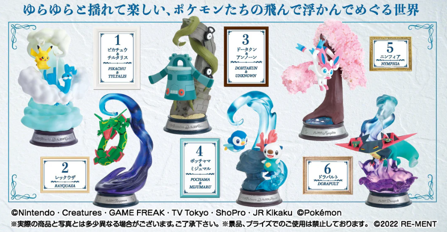 These awesome "Pokemon" figures feature your favorite Pokemon flying and floating! These figures are fun to display, with their soothing colors and detailed bases; there are six different figures available, and you'll get one of each. Place your order today!