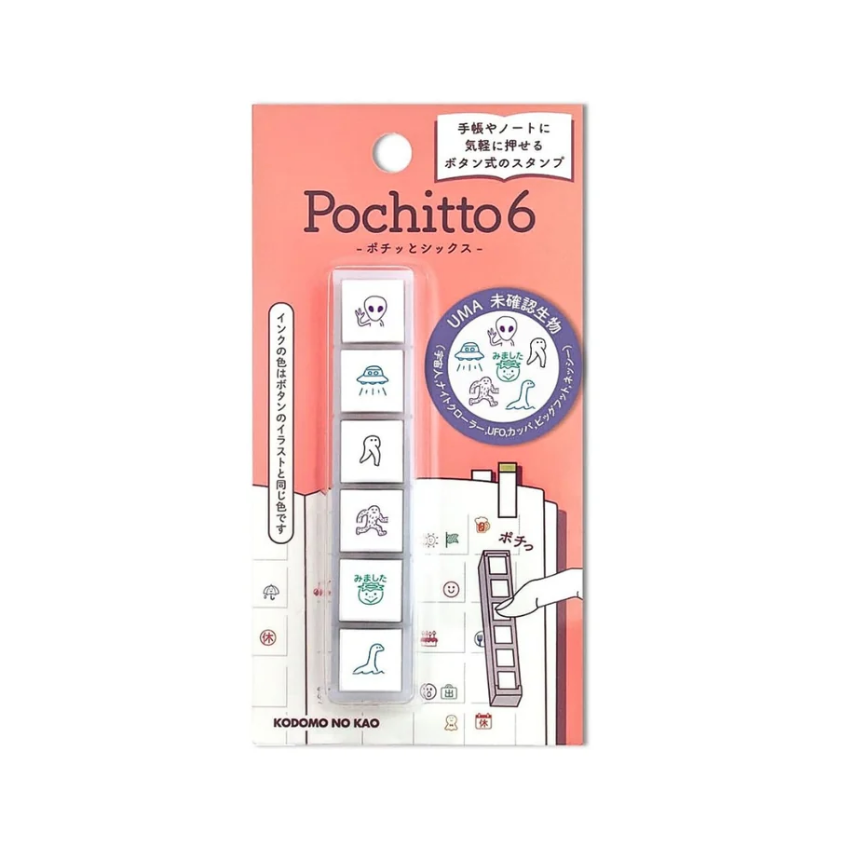 Meet the Kodomo No Kao Pochitto6 Push-Button Stamp — where stationery meets satisfying clickiness. Each compact stamp features six tiny, self-inking designs arranged like a miniature keyboard. Simply press a button to imprint a crisp, clean pattern — no wobble, no smudge, just delightful precision. With oil-based, water-resistant ink that dries in seconds, you can pair these stamps with water-based pens without fear of bleeding. Perfect for planners, study notes, or journalling, the Pochitto6 adds a touch of fun (and function) to your daily routine.