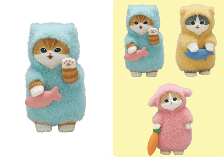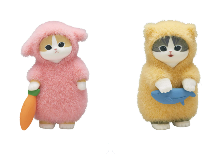The lineup includes three playful designs: Usagi Nyan (Rabbit), Kuma Nyan (Bear), and Neko Nyan (Cat). Made from durable PVC and nylon with a flocked finish, each figure measures approximately 2.2″ (56 mm) in height — a perfect compact size to showcase anywhere. Open a blind box to discover which cozy character you’ll get!